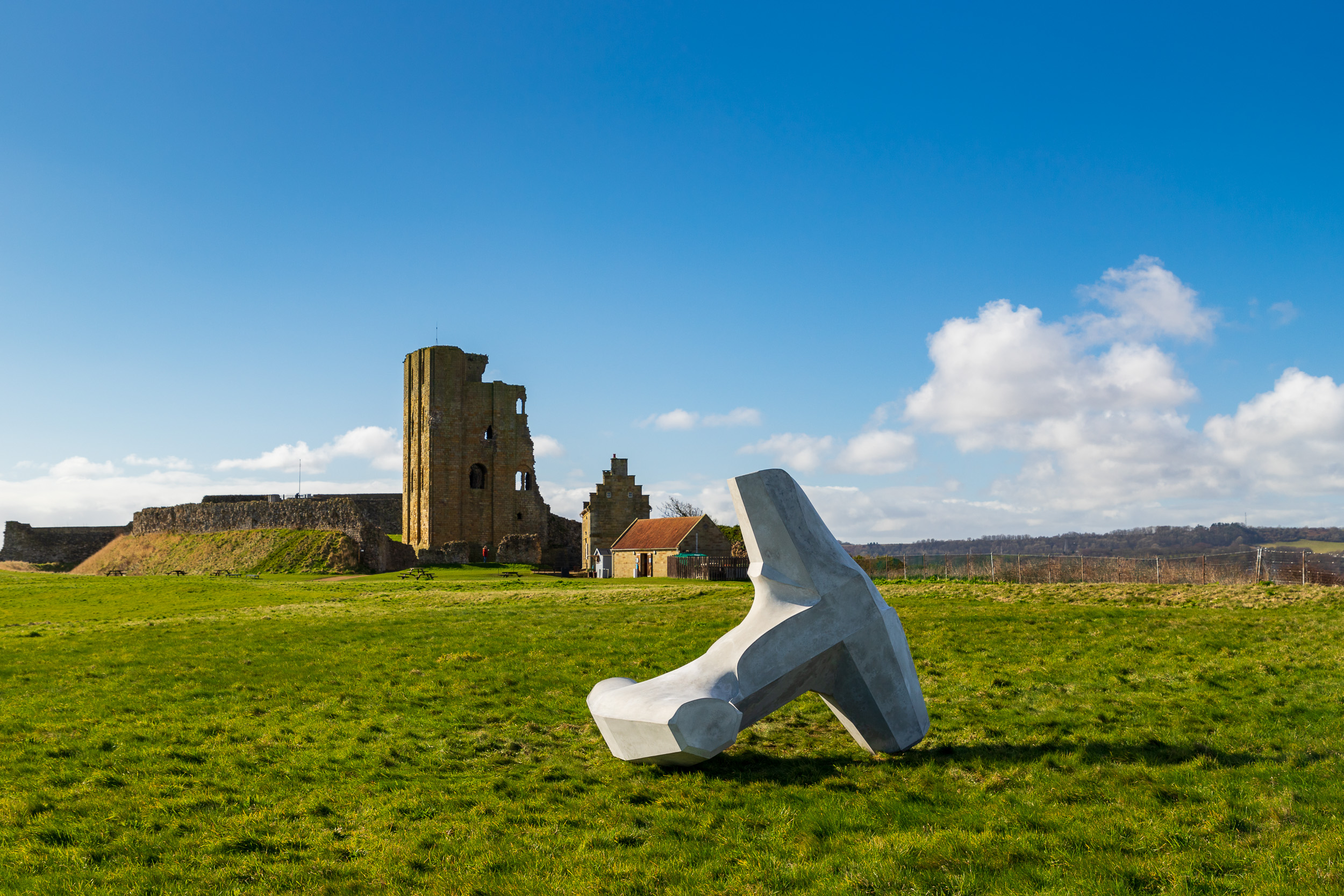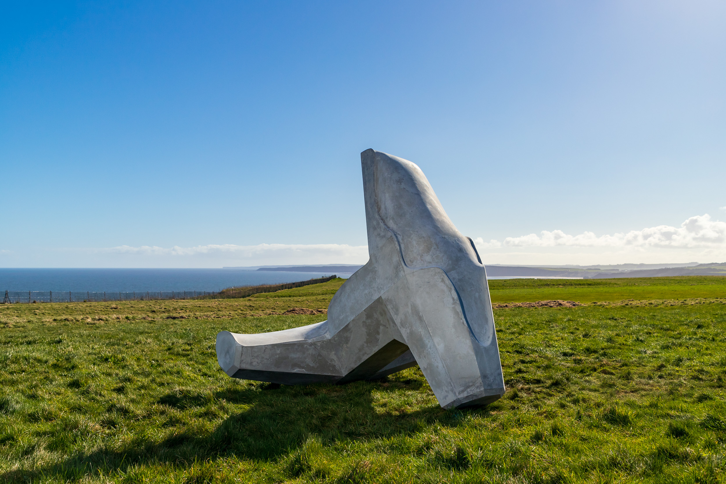 We are only human (Incomplete sculpture for Scarborough to be finished by snow) is Ryan Gander’s sculpture for Scarborough Castle headland. The sculpture also functions as a seating structure and a viewpoint for clifftop wildlife and sea views. Inspired by structures used to prevent coastal erosion, the sculpture’s design has been adapted so that its form is only completed if it is snowed on, something increasingly unlikely due to climate change. It draws attention to the important role of the sea in absorbing carbon and slowing climate change and local coastal erosion. The sculpture is made of an innovative low carbon material, incorporating recycled glass and limestone.