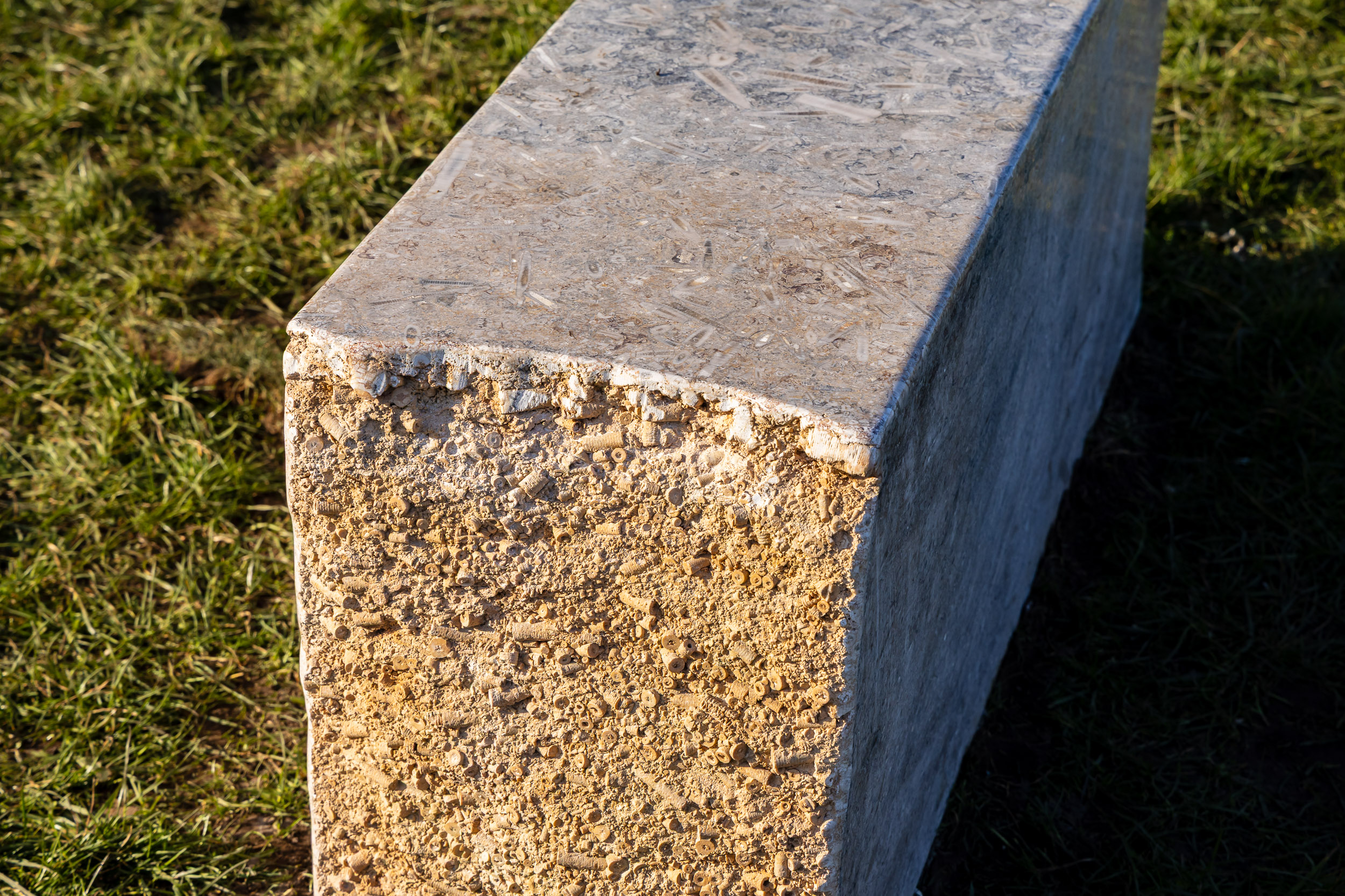 2. A gathering area from which to forage, with furniture made for and from nature. Taking visual inspiration from the stacking of hay bales further along the track, Smith’s sculptural seating and tables, invite audiences to forage nearby fruits and then sit, eat and enjoy an area of grassland that will now be rewilded as part of the artwork to also provide foraging ground for hoverflies and butterflies.